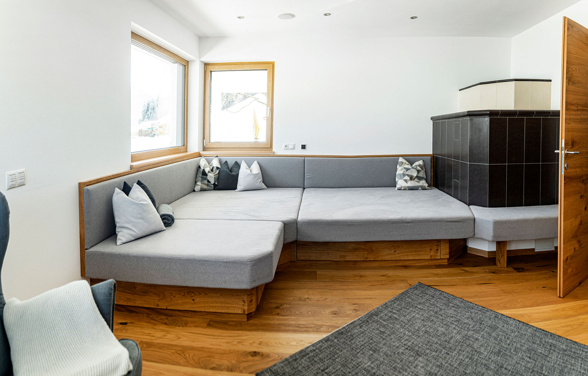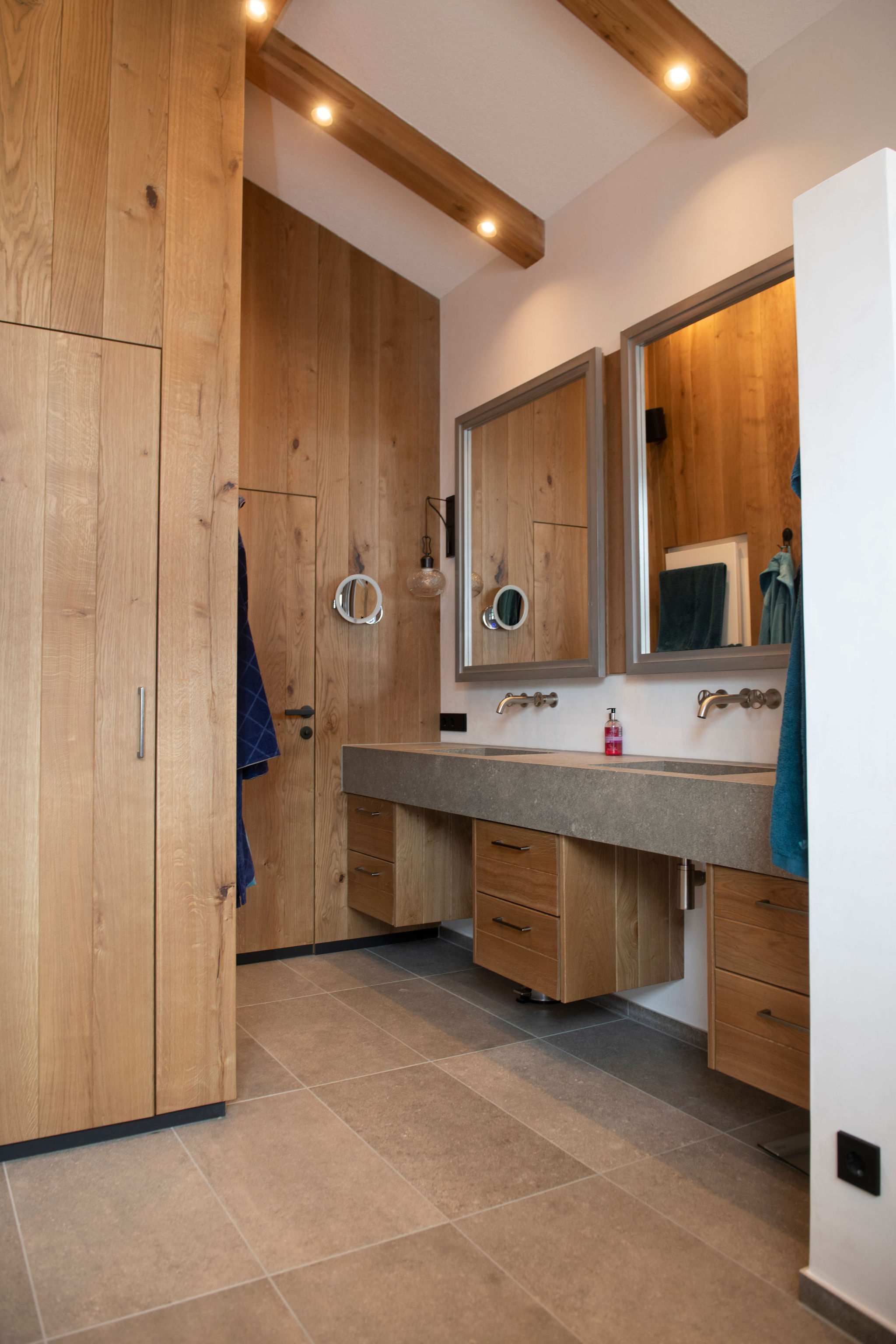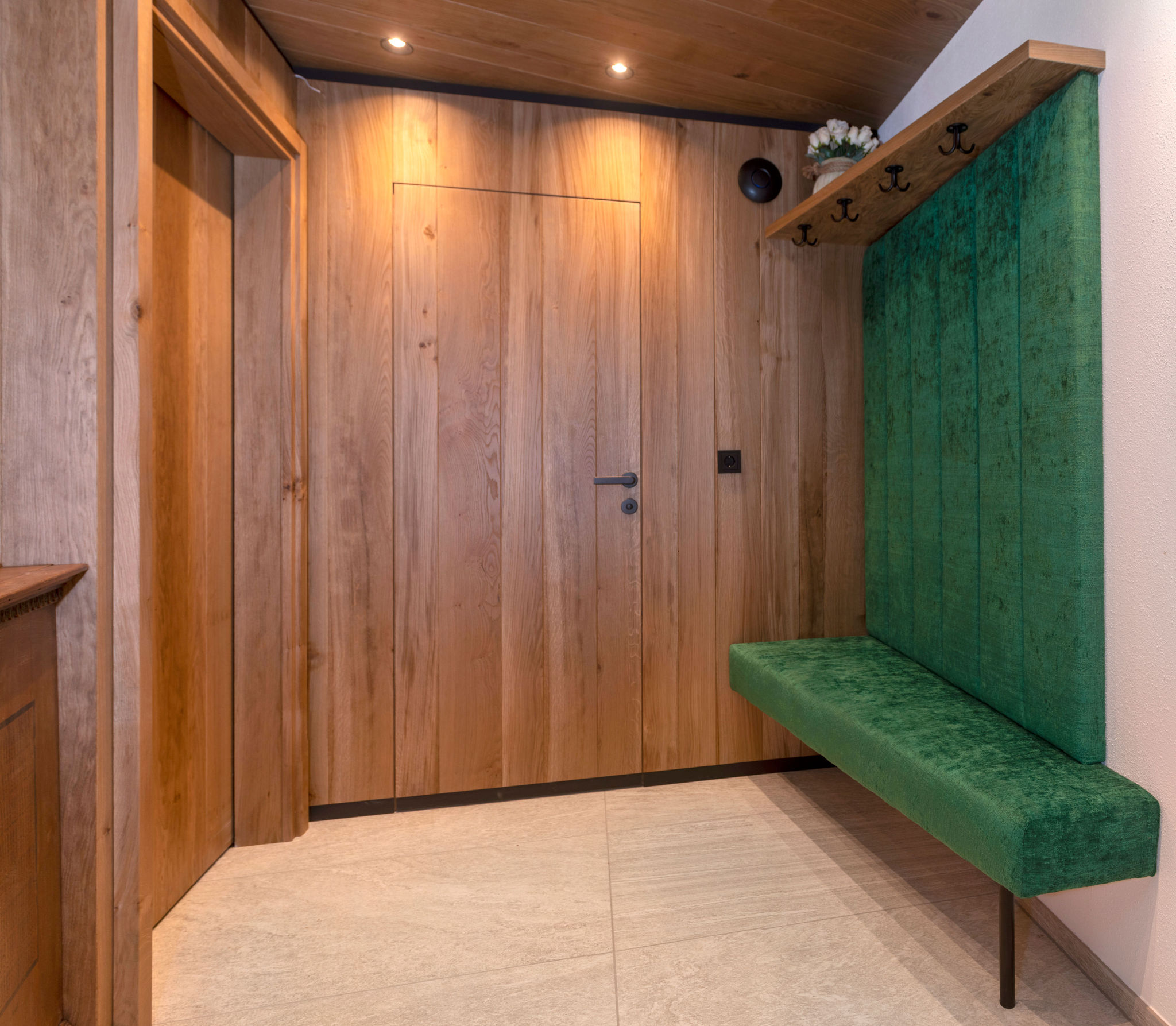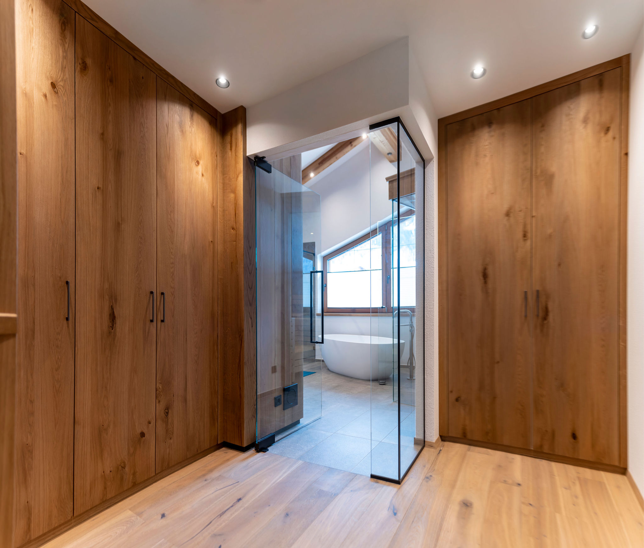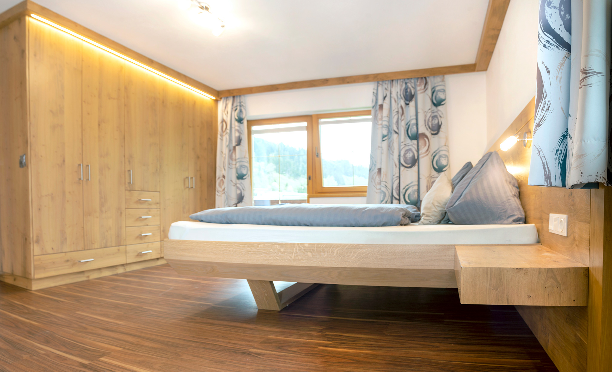 Dazu gehören hochwertige Deckenverkleidungen im Wohnzimmer, maßgeschneiderte Garderoben sowie stilvolle und funktionale Einrichtungen für Schlafzimmer, Kinderzimmer und Küchen.
