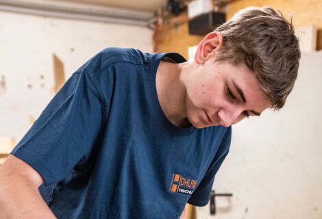 Heute beschäftigen wir acht Mitarbeiter, darunter aktuell zwei Lehrlinge. Vier der jetzigen Mitarbeiter haben ihre Lehre in der Tischlerei Hohlrieder absolviert, was die starke Ausbildungsphilosophie unseres Unternehmens unterstreicht. Die Ausbildung von Lehrlingen ist seit jeher ein zentrales Anliegen, um das Handwerk zu bewahren und weiterzuführen.